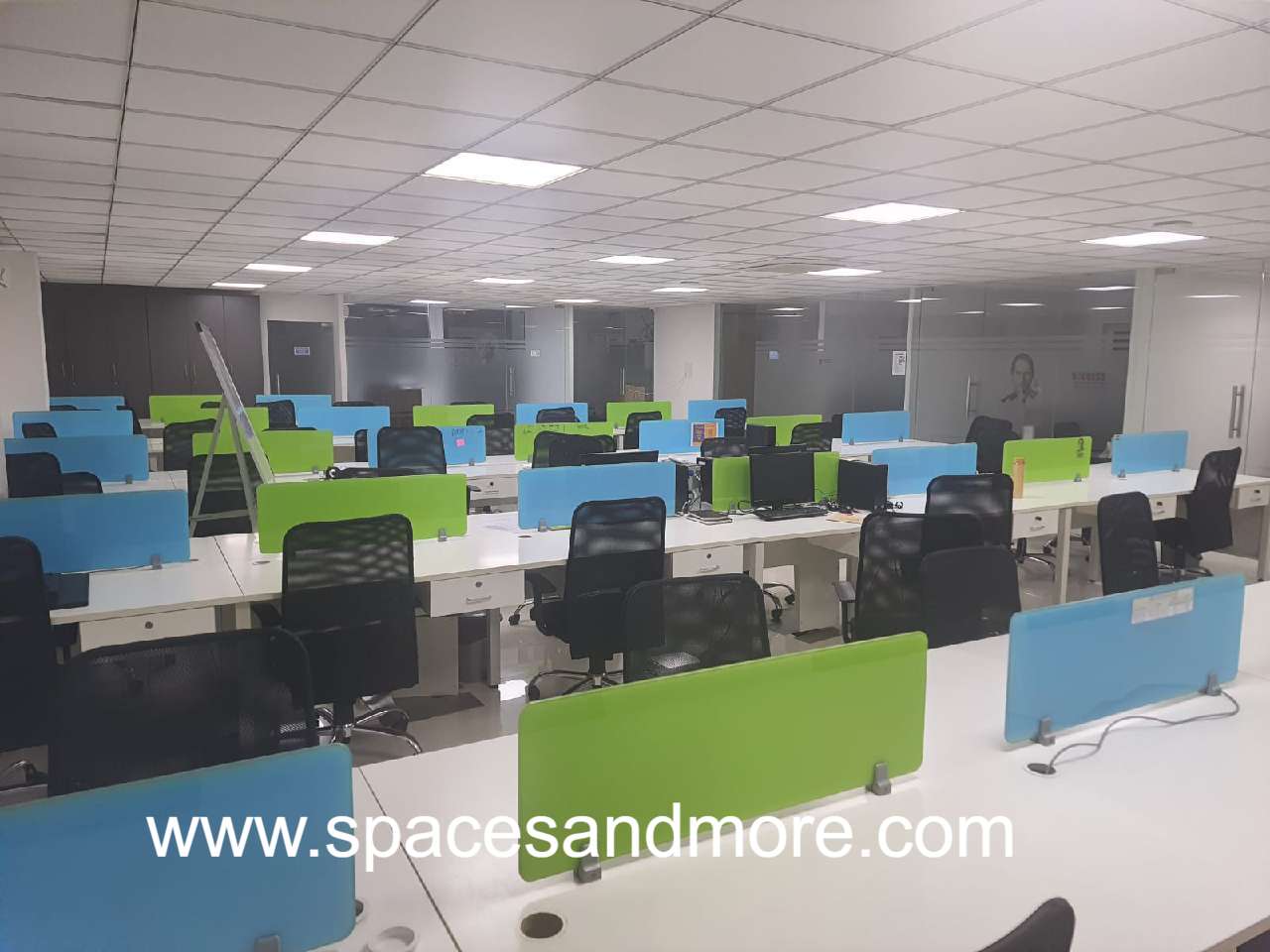 Plug and play Office Space Having 62 Work Stations, 3 manager cabins, 1 Conferene Room,lift, 2 carparking, 2 washroom, Split Ac, Sexcu=rity, Onsite manager, 100 DG backup.