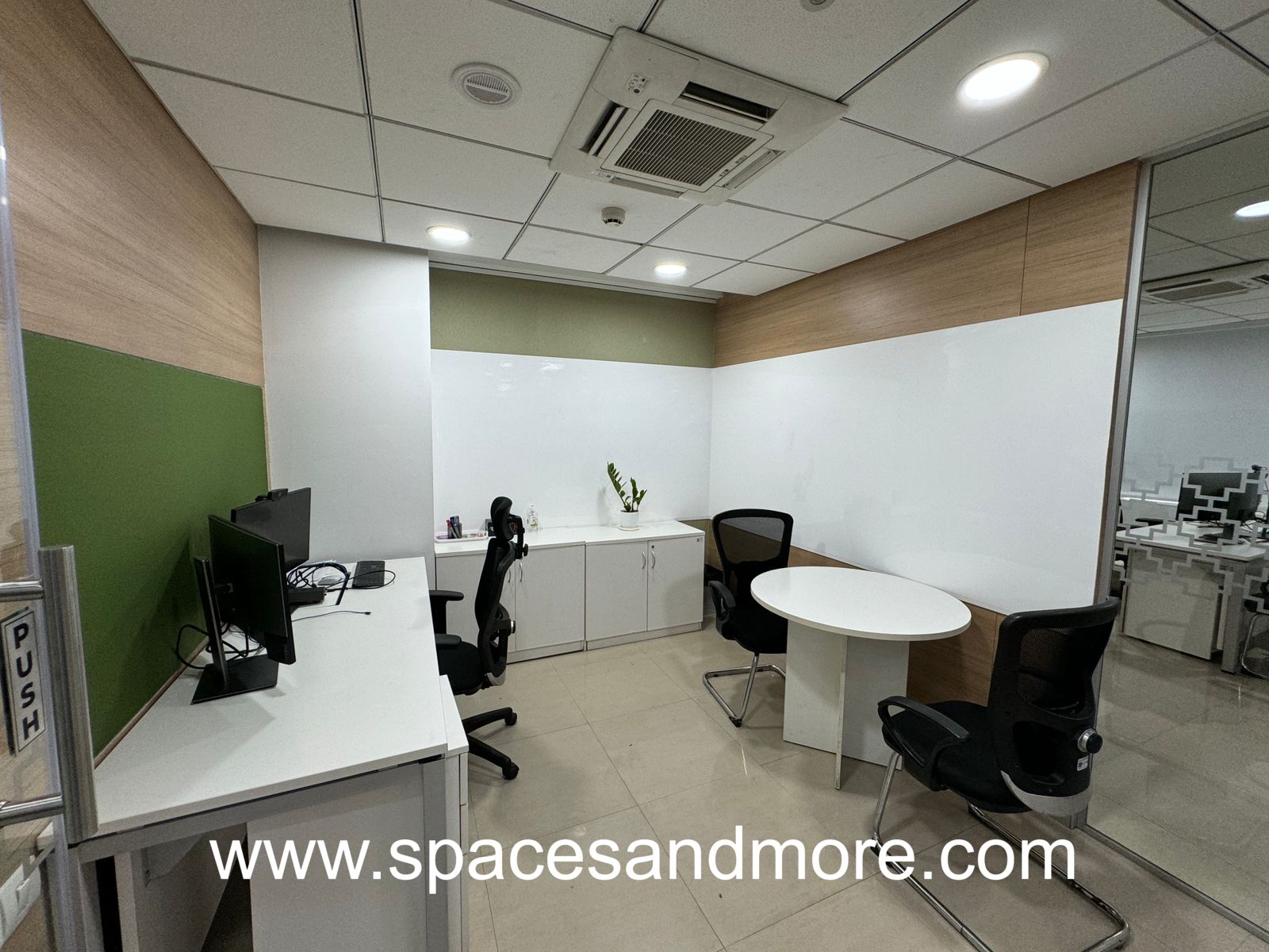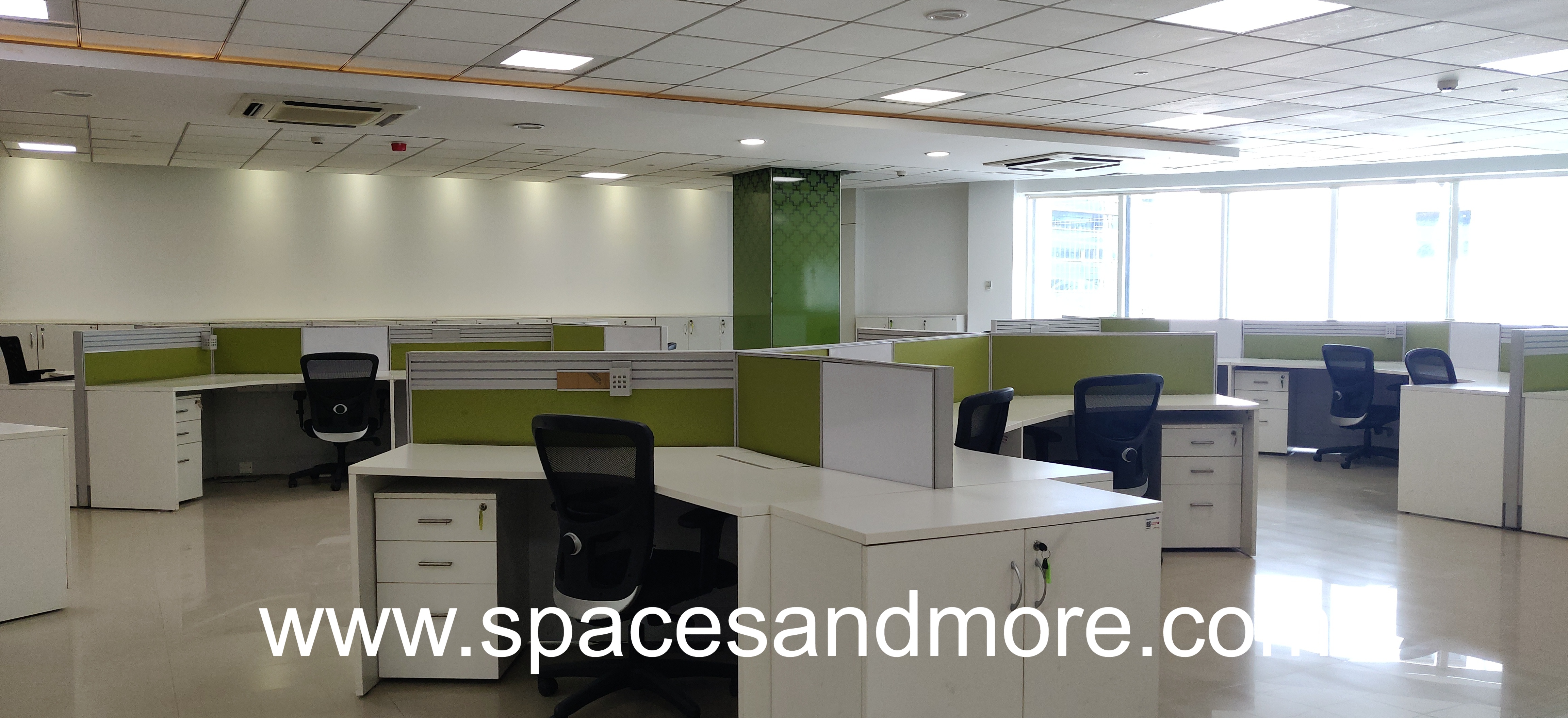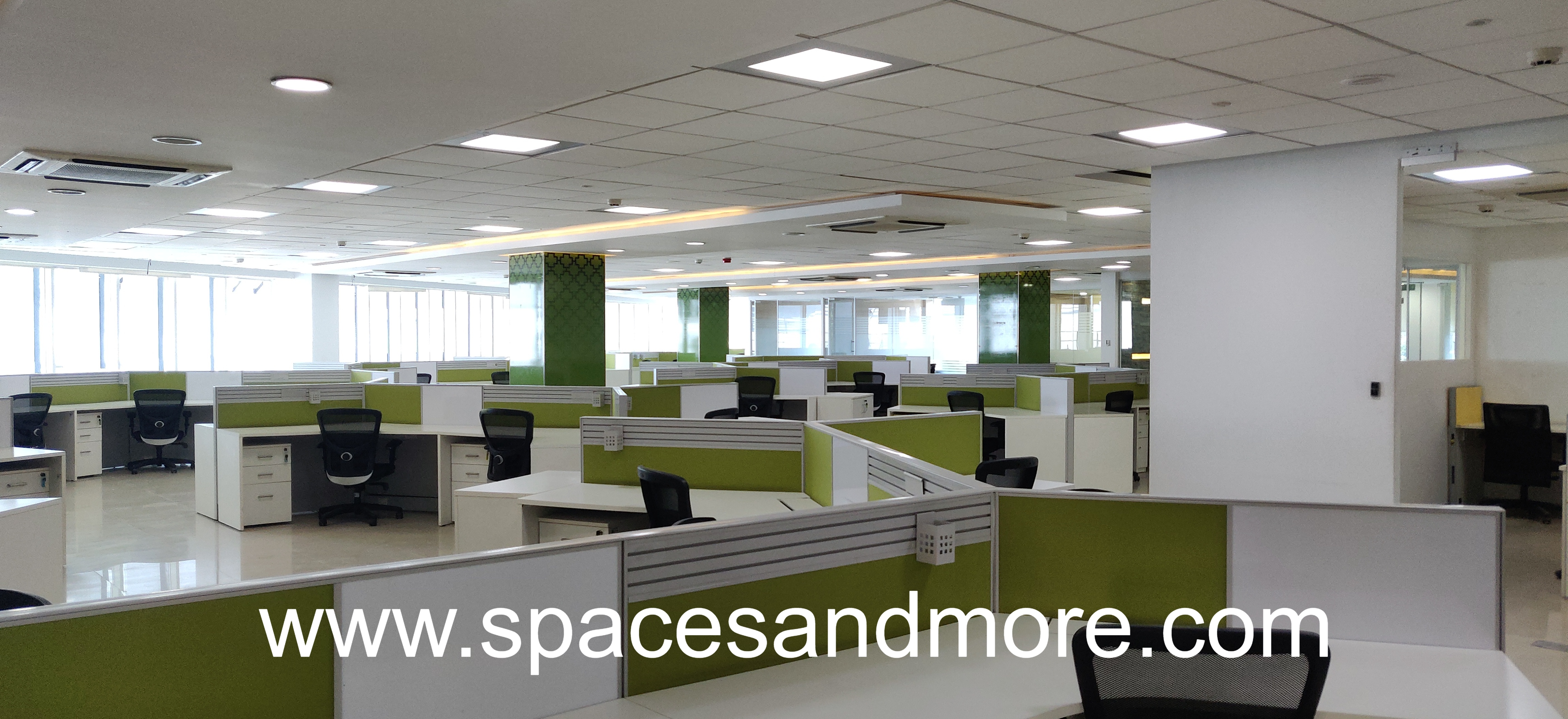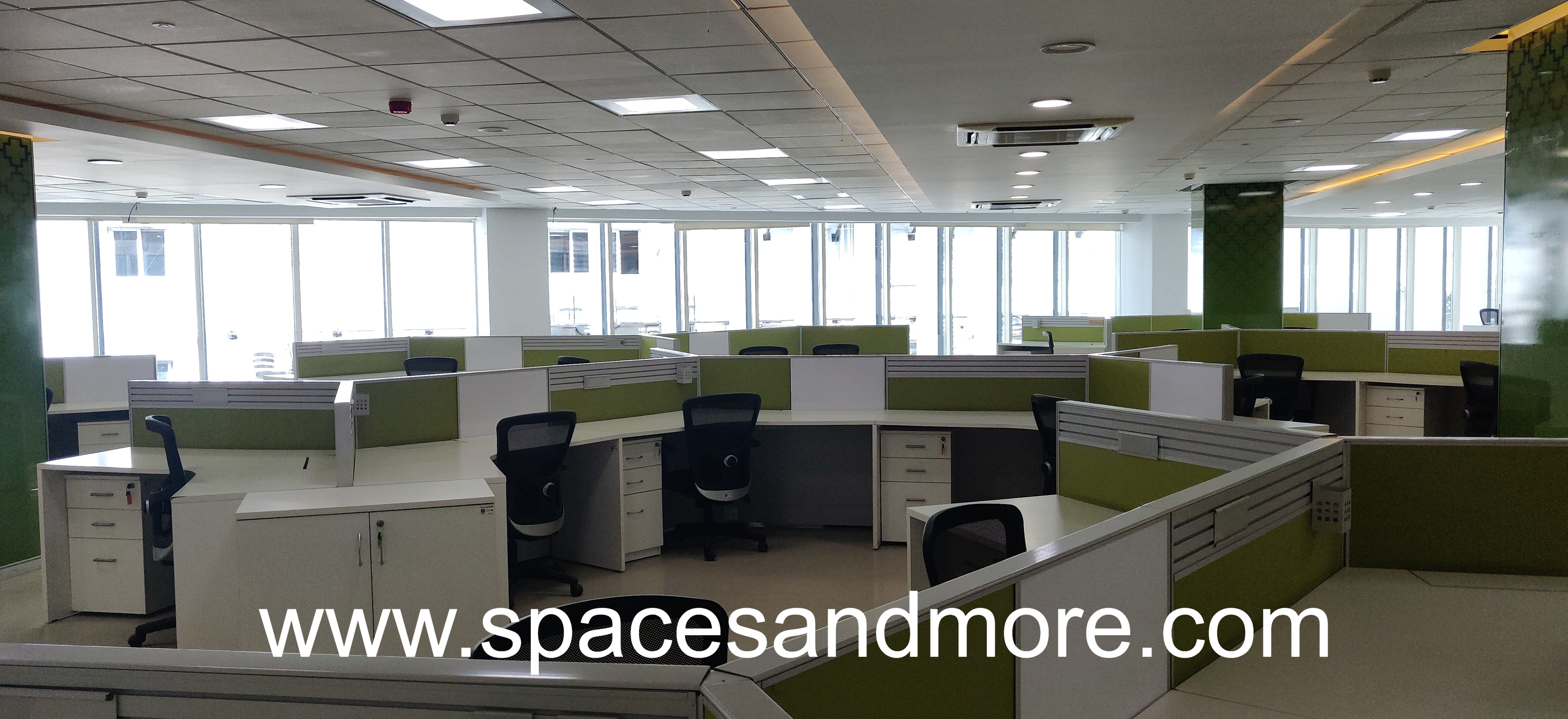 Plug and Play Office Space having 80 Workstations, 9 Manager cabins, 1 Conference Room, 1 Discussion Room, Pantry, Reception, Ac, Lift, 8 Car parking, 3 Washrooms, Onsite Manager, Server Room, Security, 100 DG Backup.