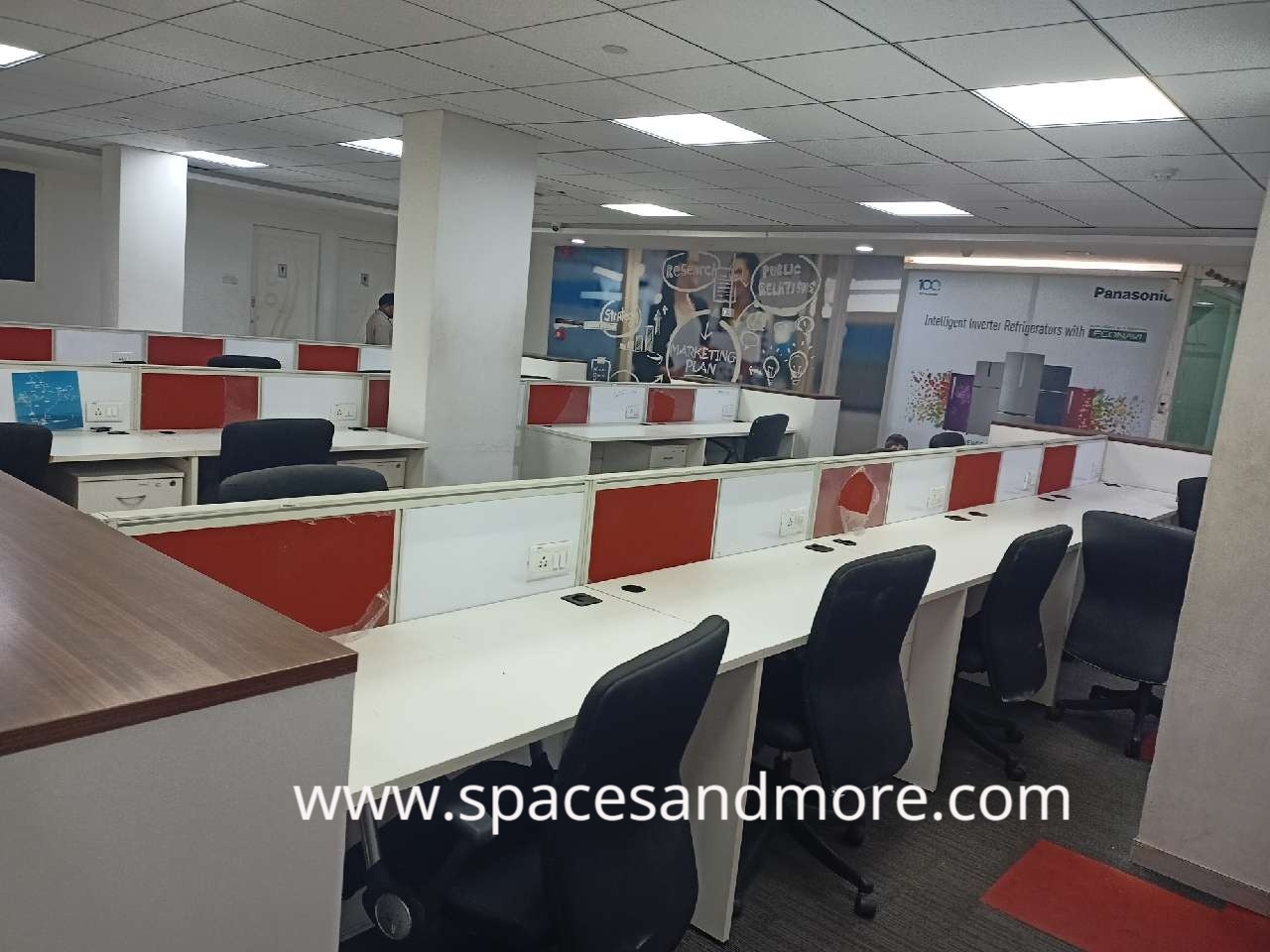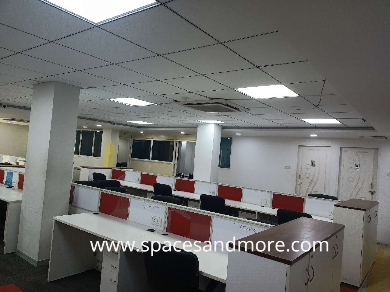 Plug N Play Commercial Office Space Having 60 Work Stations, 2 Manager Cabins,1 Discussion Room,1 Conference Room, Reception,2 Car Parking, 2 Washrooms, Lift, Castle Ac, Security, On Site Manager 100 DG backup