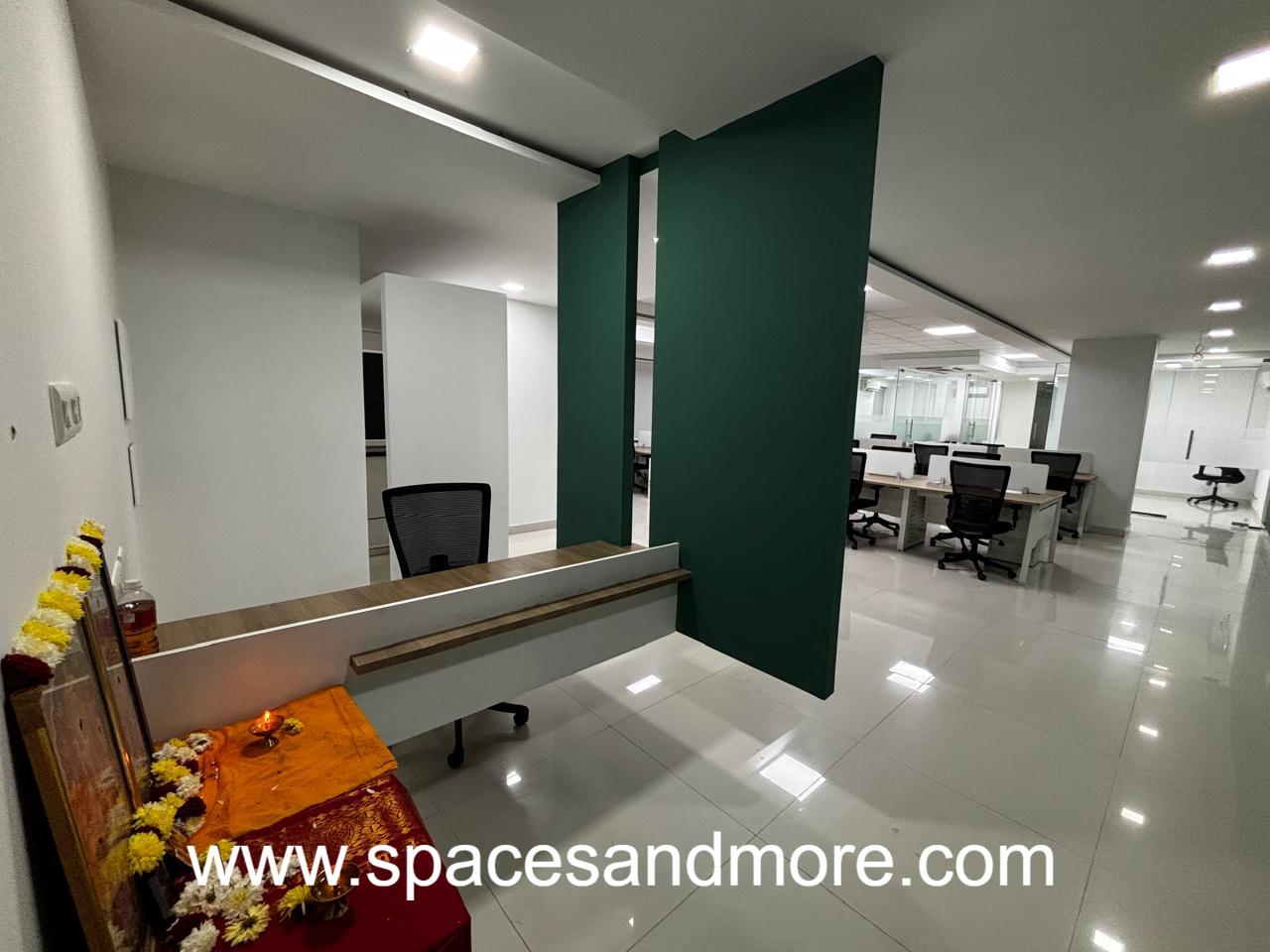 Plug and Play office Space having 19 Workstations, 4 manager Cabins, 1 Conference room, Reception, Pantry, Ac, Lift, Server Room, Lunch room, 3 car Parking, 2 washrooms, Security, Onsite Manager, 100 Dg Backup.