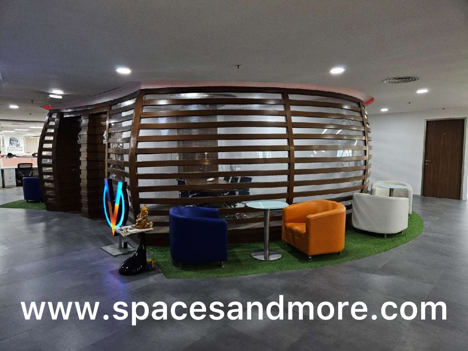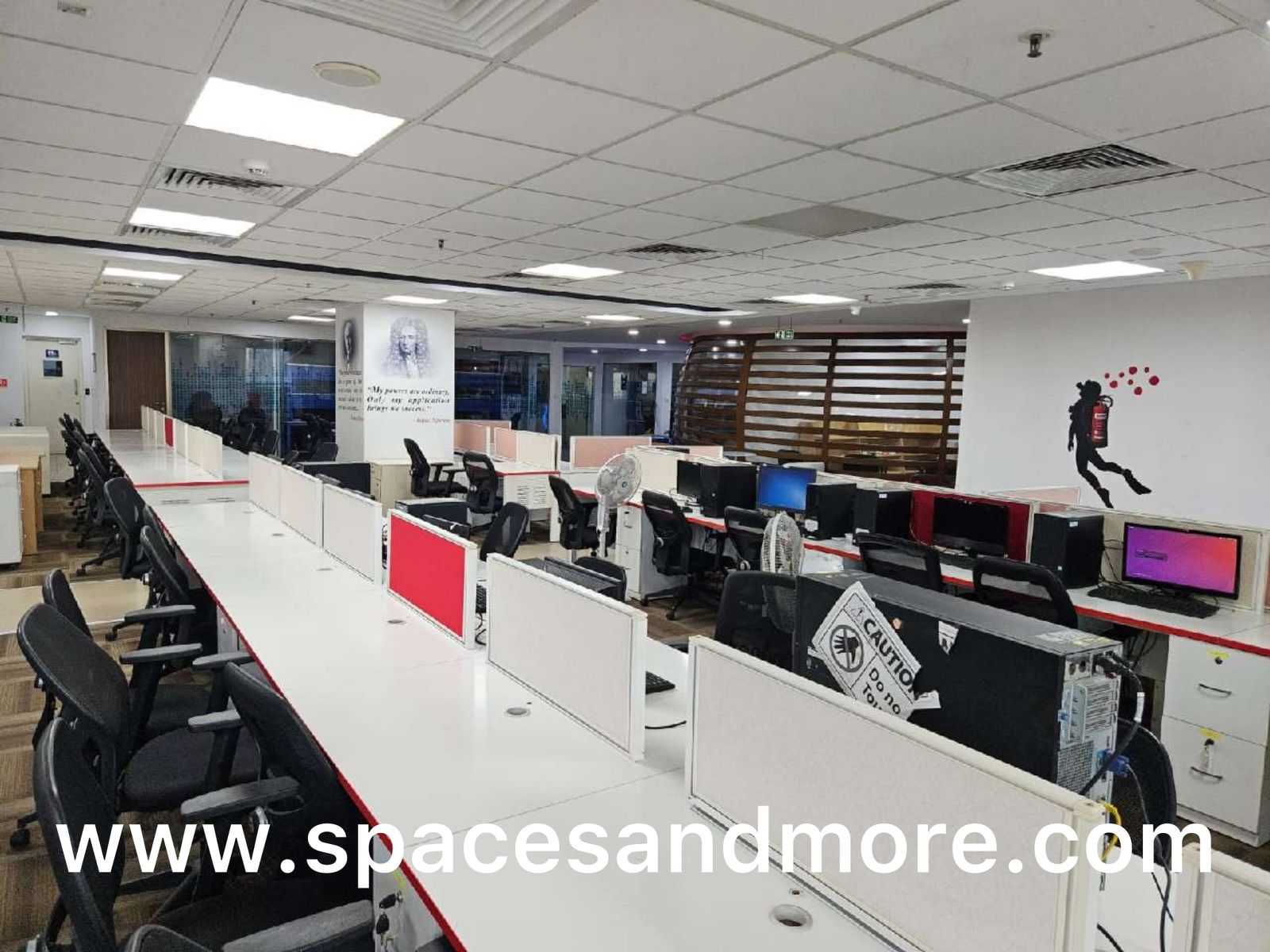 Plug & Play Commercial Office Space Having 108 Work Stations, 4 Manager Cabins,1 Discussion Room,1 Conference Room,Reception 10 Car Parking, 2 Washrooms, Lift, Central Ac, Security, On Site Manager 100 DG backup.